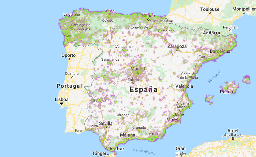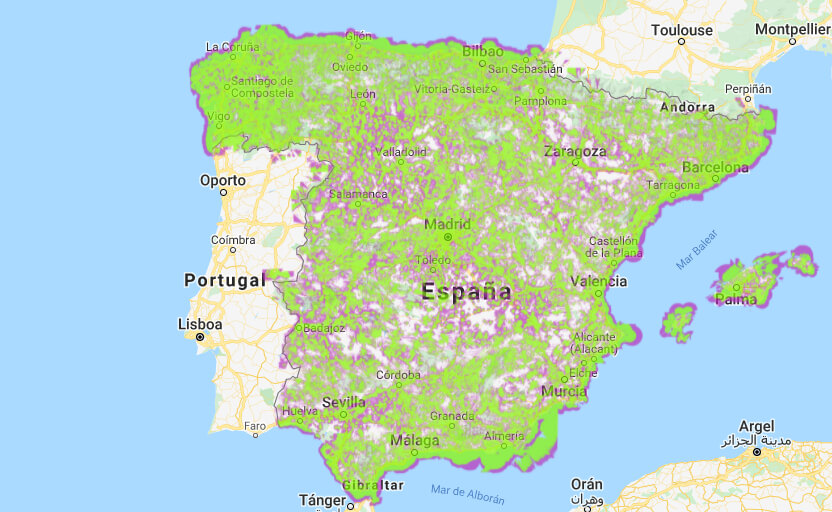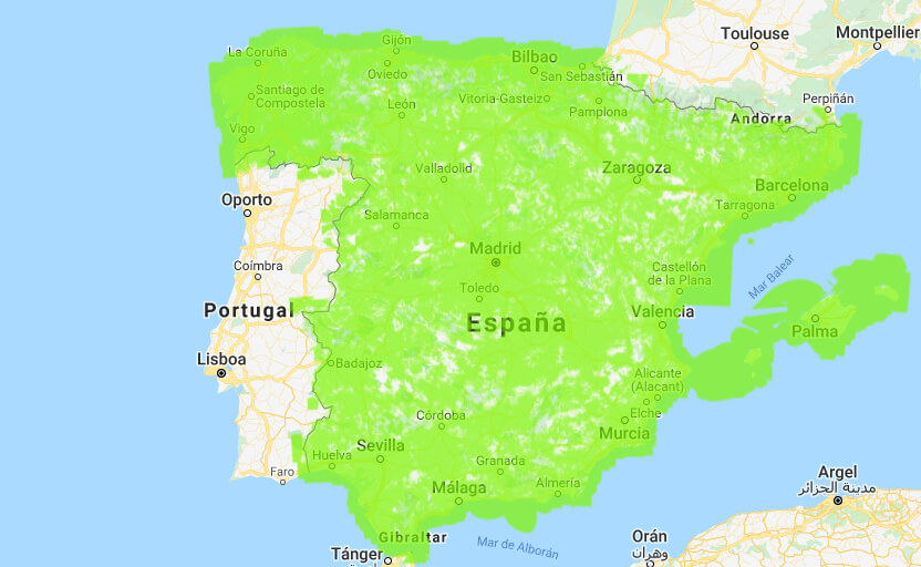 На цій сторінці представлена карта покриття наших послуг, щоб ви могли бути впевнені у стабільному зв’язку будь-де. Одним із ключових факторів під час вибору мобільного оператора є широта та надійність його мережі. Обираючи Todo Telecom, ви отримуєте мобільне покриття на 98% території Іспанії.
